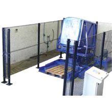 Once the load is securely in place, a new pallet is placed upside down on top of the load. The Inverter then grips the load top and bottom, then rotates it 180 degrees so the weight is on the new pallet, and the old pallet can now be removed from on top.