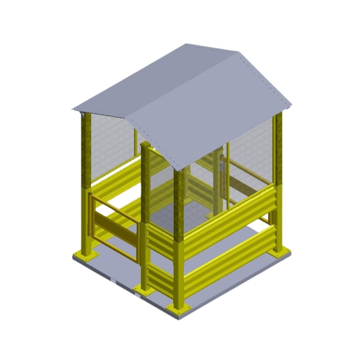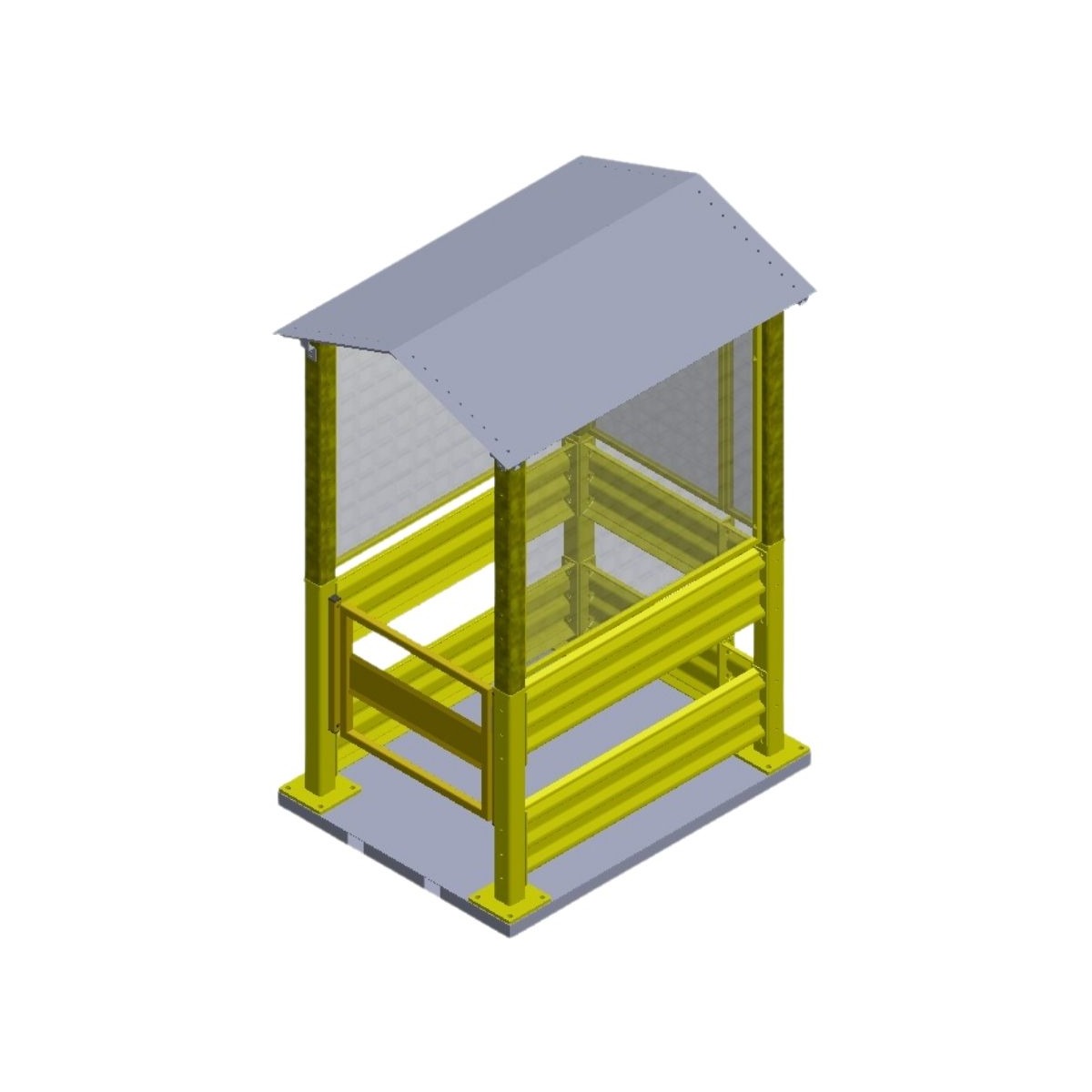 The structure features a barrier base, with mesh extensions to increase protection, while the sheet metal roof makes the unit versatile for all weather conditions.